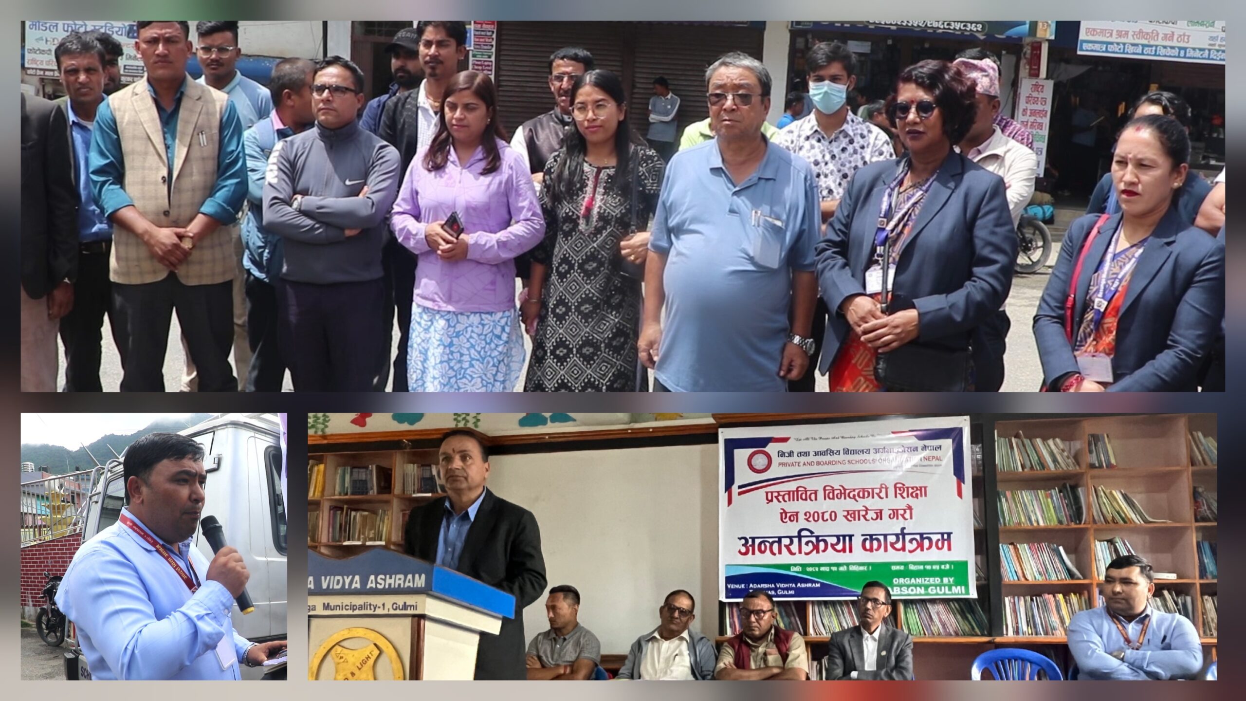 शिक्षा ऐन खारेजीको माग गर्दै गुल्मीका निजी विद्यालयहरु आन्दोलित